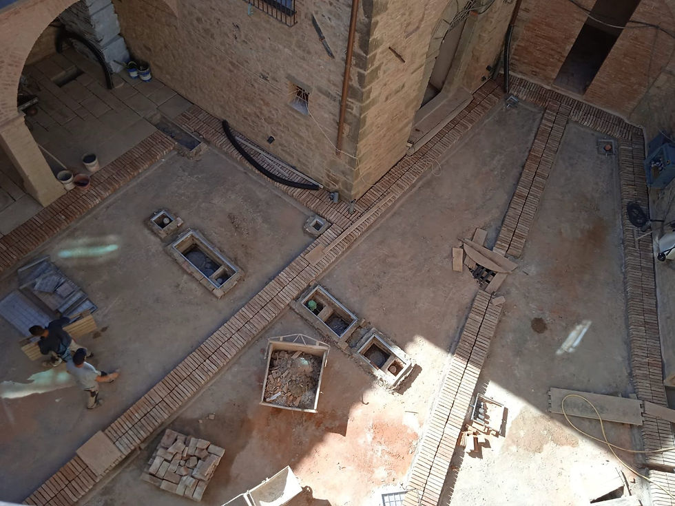 The brick border in the courtyard is now complete.The Palace-Castel RigoneMay 28, 20211 min readWe still need to put the mortar between the bricks, but then we will be ready to pour the concrete and stone aggregate between the bricks.